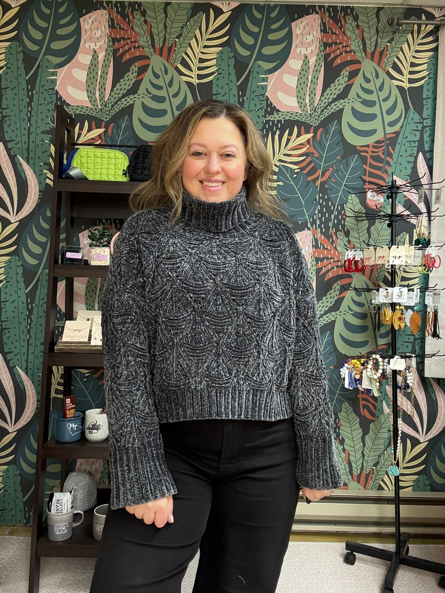 Soft, cozy, crop turtle neck sweater. This knit is incredible soft and warm. Great piece to add to your closet. S/M only available.